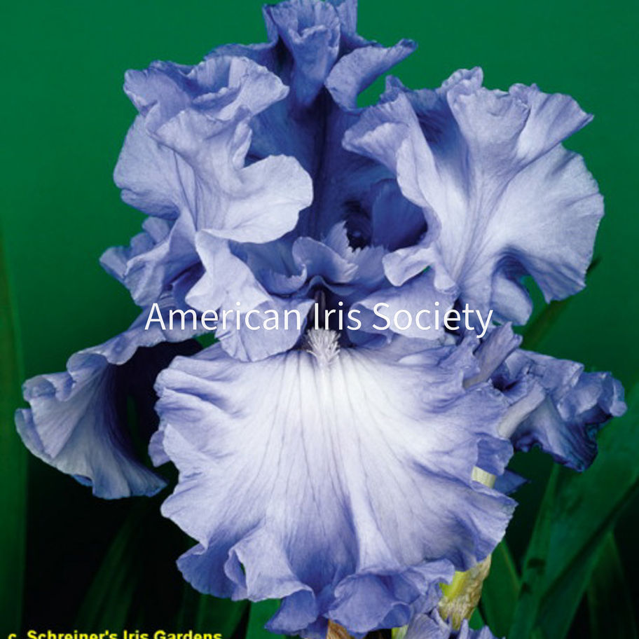 Abiqua Falls (Schreiner, 2003) is a tall bearded iris reaching 39" (99 cm), introduced by renowned hybridizer Schreiner. This midseason bloomer features heavily ruffled, light blue (RHS 93D) petals with a harmonious self-coloration. The beards are yellow, transitioning to blue at the tips, adding a refined accent to the flower’s cool palette. Bred from Cascade Springs x Monet’s Blue, Abiqua Falls has been recognized with an Honorable Mention in 2005 and an Award of Merit in 2007. This iris is a field-grown variety offered by Amethyst Creek Farm. No reblooming or fragrance is noted in the official description. Attributes: Fertile, Ruffled Awards: Award of Merit, Honorable Mention